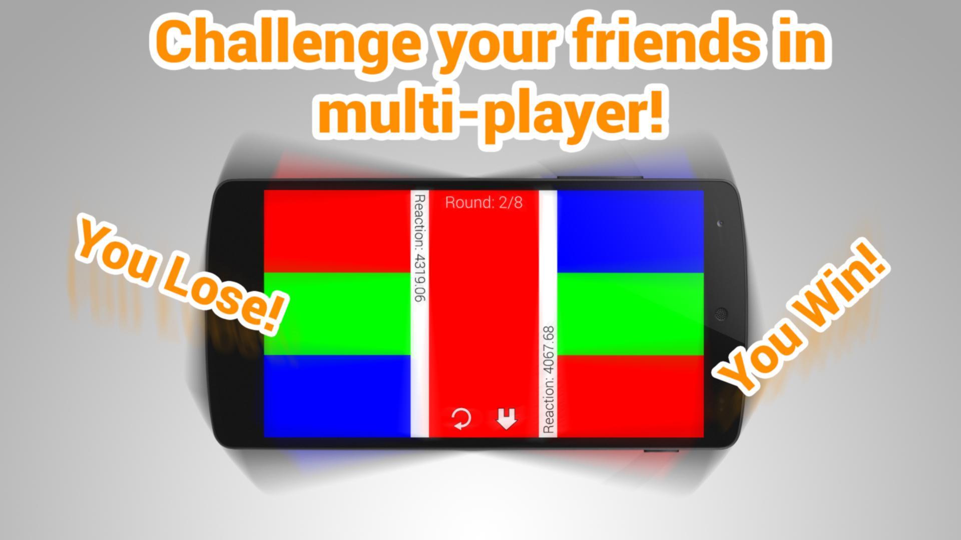Reaction Games是基于反射的迷你游戏的集合,旨在基准并帮助您改善反应。有6种免费游戏,包括一个多人游戏模式,该模式有朋友竞争最快地利用正确的颜色。还有一个简单的白色至黑色“反应测试”以及其他反应测试,它将测试您对其他颜色或形状的反应。