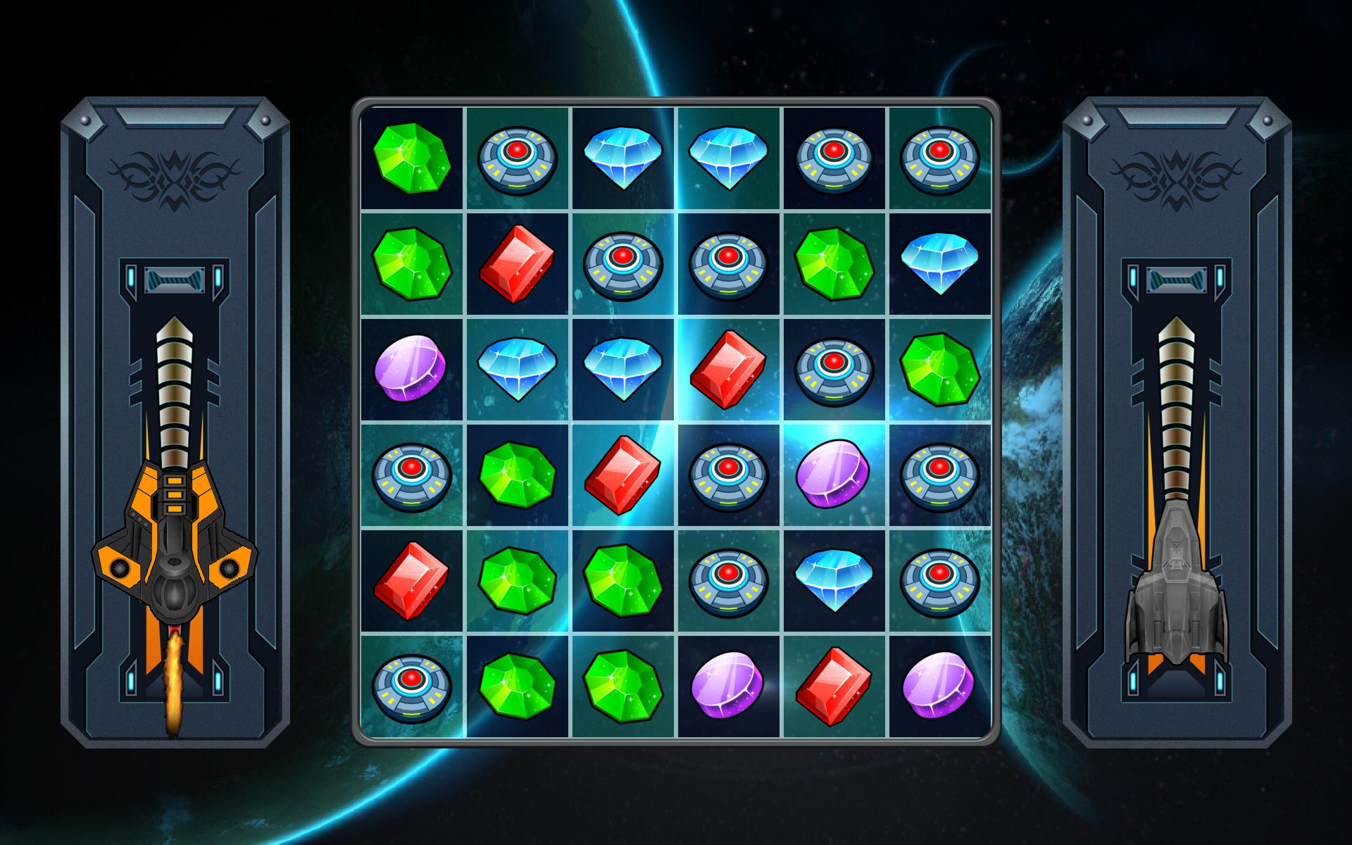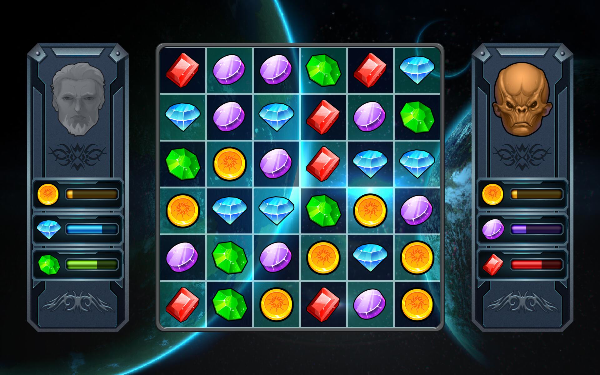 连续匹配三个珠宝,宝石或文物以得分。在此转弯的比赛3益智游戏中,您将与聪明的外星对手对抗。