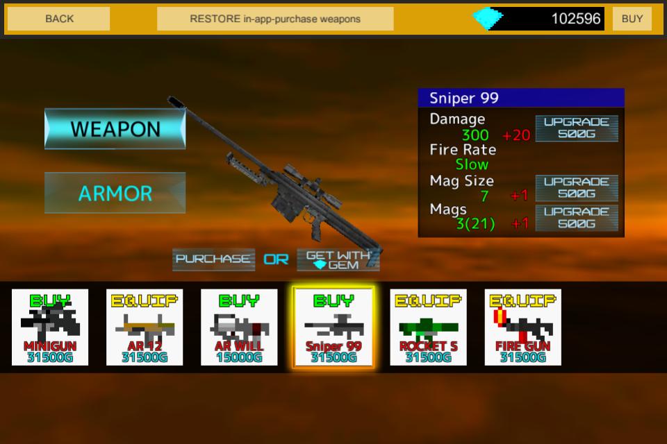 各种武器,例如Machingun,Shotgun,Deagle,手榴弹,RPG,刀,AR。
