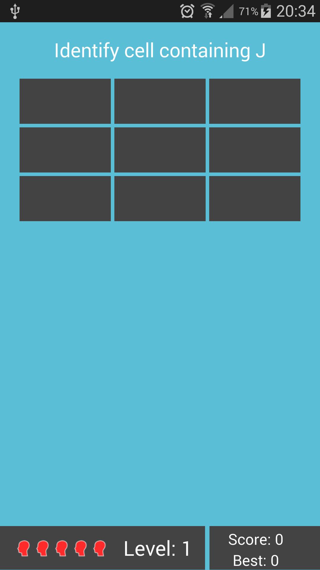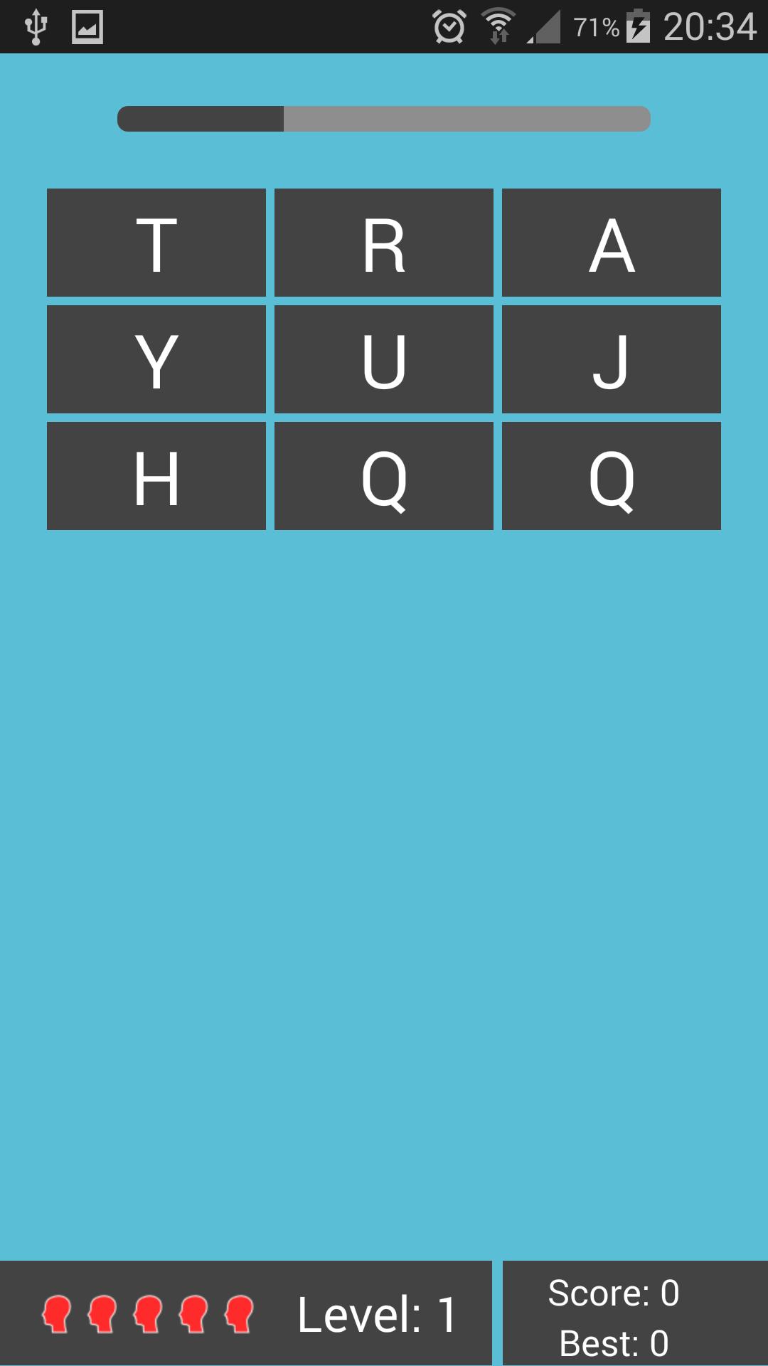 您必须记住它们的位置,因为您将被要求确定将这些字母放在以前的屏幕上。正确的答案将提高分数10,错误的答案将导致寿命。播放并提高您的记忆水平