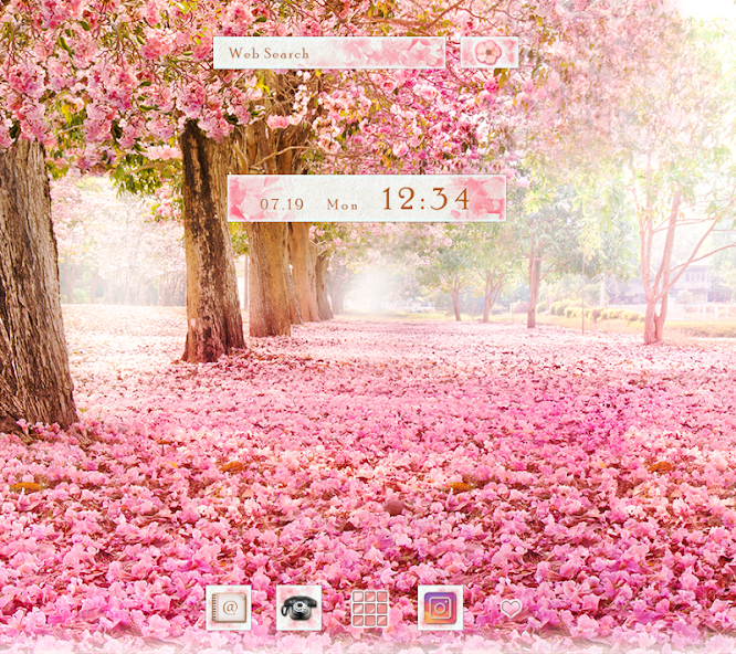 粉紅色的花瓣覆蓋地面,形成了浪漫的開花櫻桃樹主題。