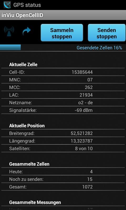•將收集的數據自動或手動發送到OpenCellid服務器