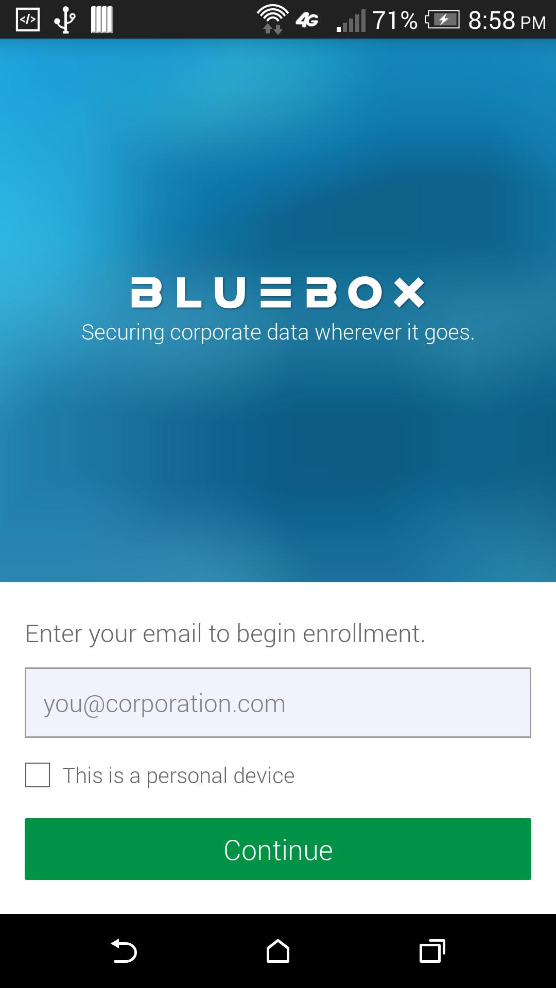 該應用程序允許您使用Bluebox移動數據安全解決方案。
