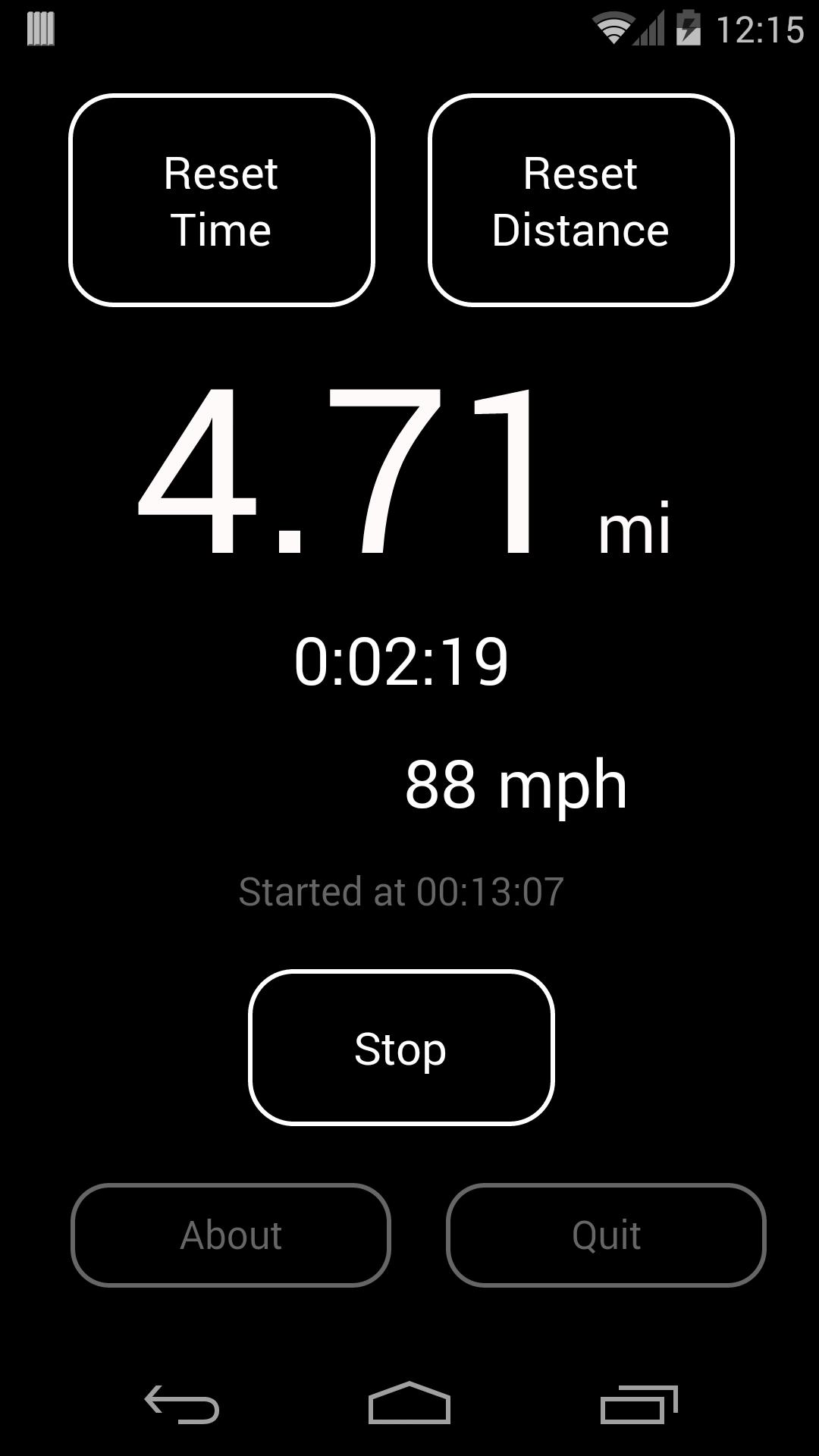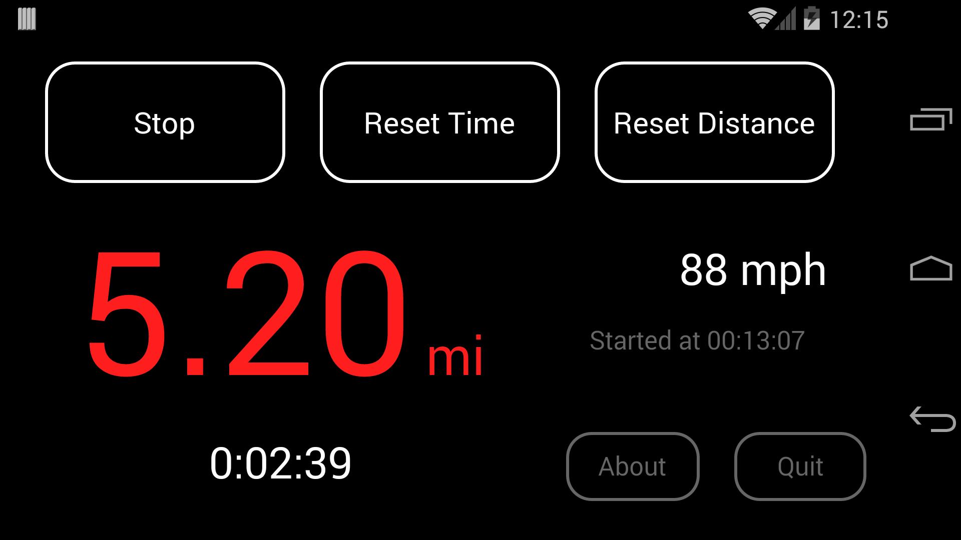 只需在MPH中輸入目標平均速度(點擊“點擊以將“ MPH”旁邊的“文本”設置),然後點擊開始按鈕。距離計數器將顯示旅行的理論距離。它也將每1英里發出嗶嗶聲,以便向副駕駛員提供其他非視覺反饋。