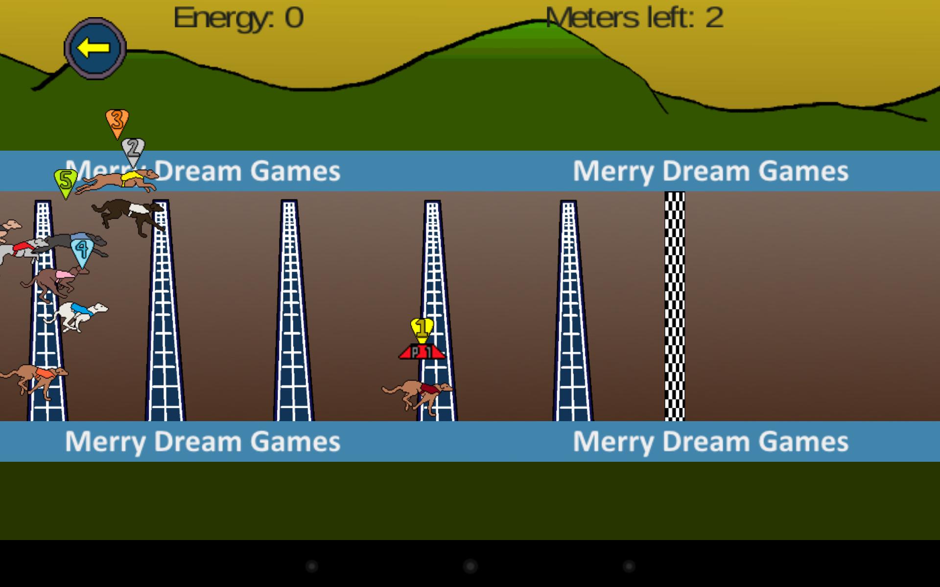 您可以簡單地敲擊屏幕來更快;但是,您走得越快的速度越快。通過平衡速度和能量來找到良好的比賽策略。確保您有足夠的精力來完成狗競賽。