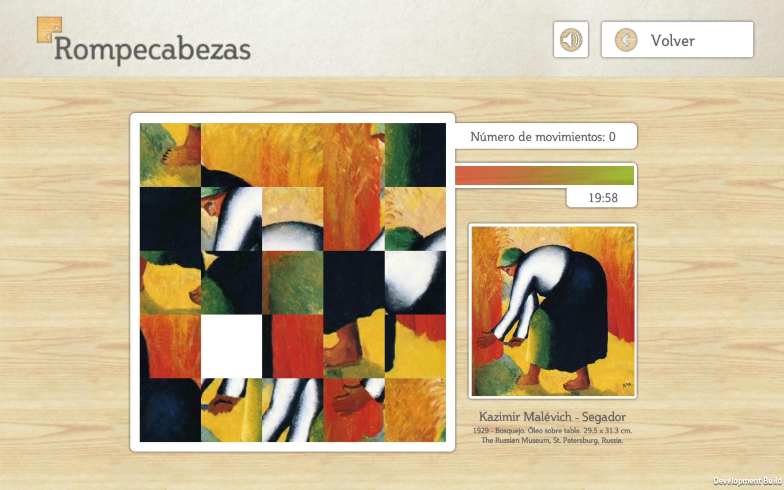- 難題,玩家將不得不使用空白空間移動無序的碎片,以重建樣品圖像。它有有限的實現時間。有幾個示例圖像可供選擇。