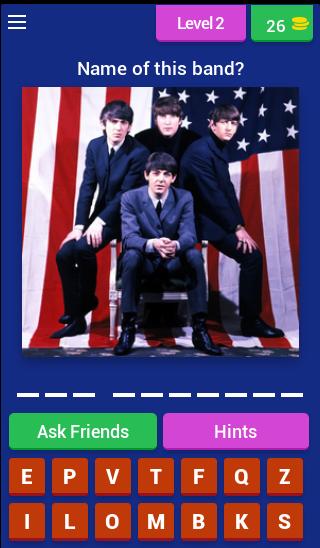 - 要完成級別,您需要點擊正確的字母以猜測歌手並發展到一個新的水平。