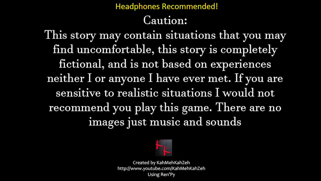 這是一種體驗。大約30分鐘或更長時間,具體取決於您是否獲得所有結局。該遊戲是一個僅使用聲音,音樂和文字的基於文本的故事,可以使用3個結尾(第四個結尾)