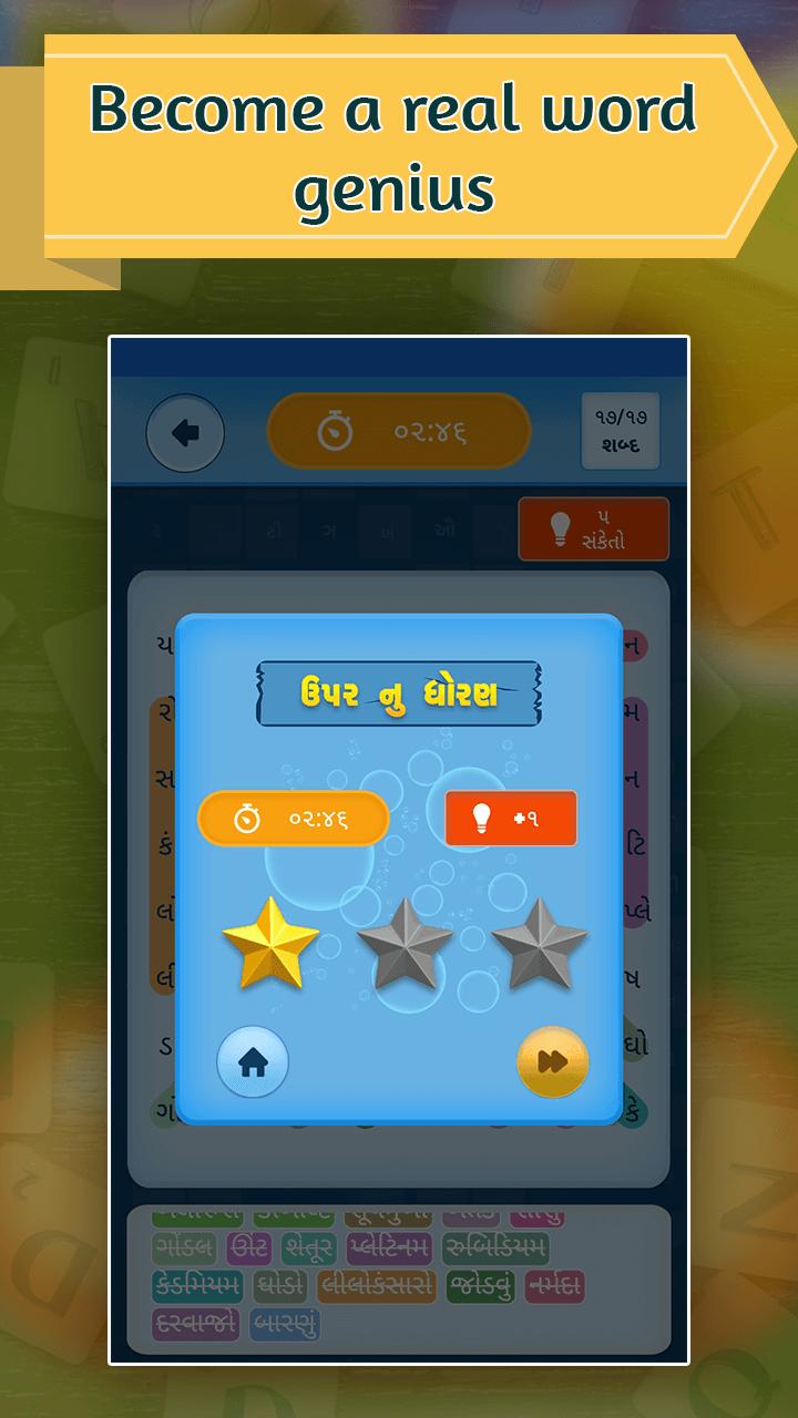 在Gujarati應用中搜索此單詞搜索遊戲中的所有隱藏單詞。古吉拉特語中對孩子的一詞搜索包括9個類別,例如所有單詞,動物,汽車,鳥類,花,水果,名詞,元素和國家。時間是關鍵,您必須不斷監視時間並以最少的時間完成遊戲。如果您成功地清除了最短時間的水平,那麼您會根據所獲得的開始將獲得提示。您獲得的星星越多,在古吉拉特邦應用程序中,您會在文字遊戲中獲得的提示。